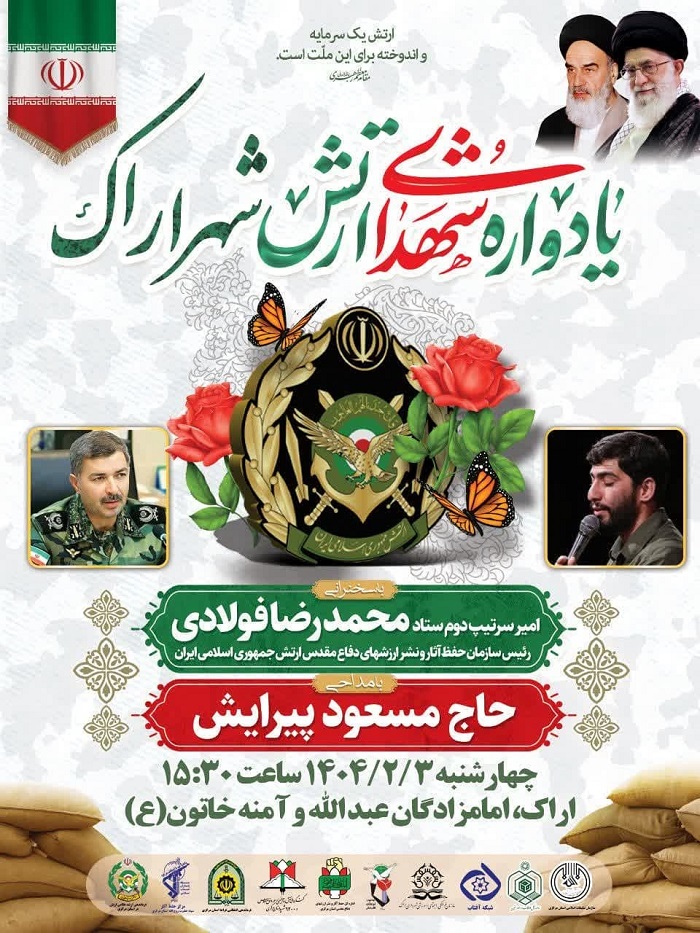 مراسم یادواره شهدای ارتش شهرستان اراک ، روز سوم اردیبهشت ماه ، در بارگاه مطهر امامزادگان آمنه خاتون و عبدالله(ع) ، با حضور مسئولین کشوری و استانی برگزار می‌شود.